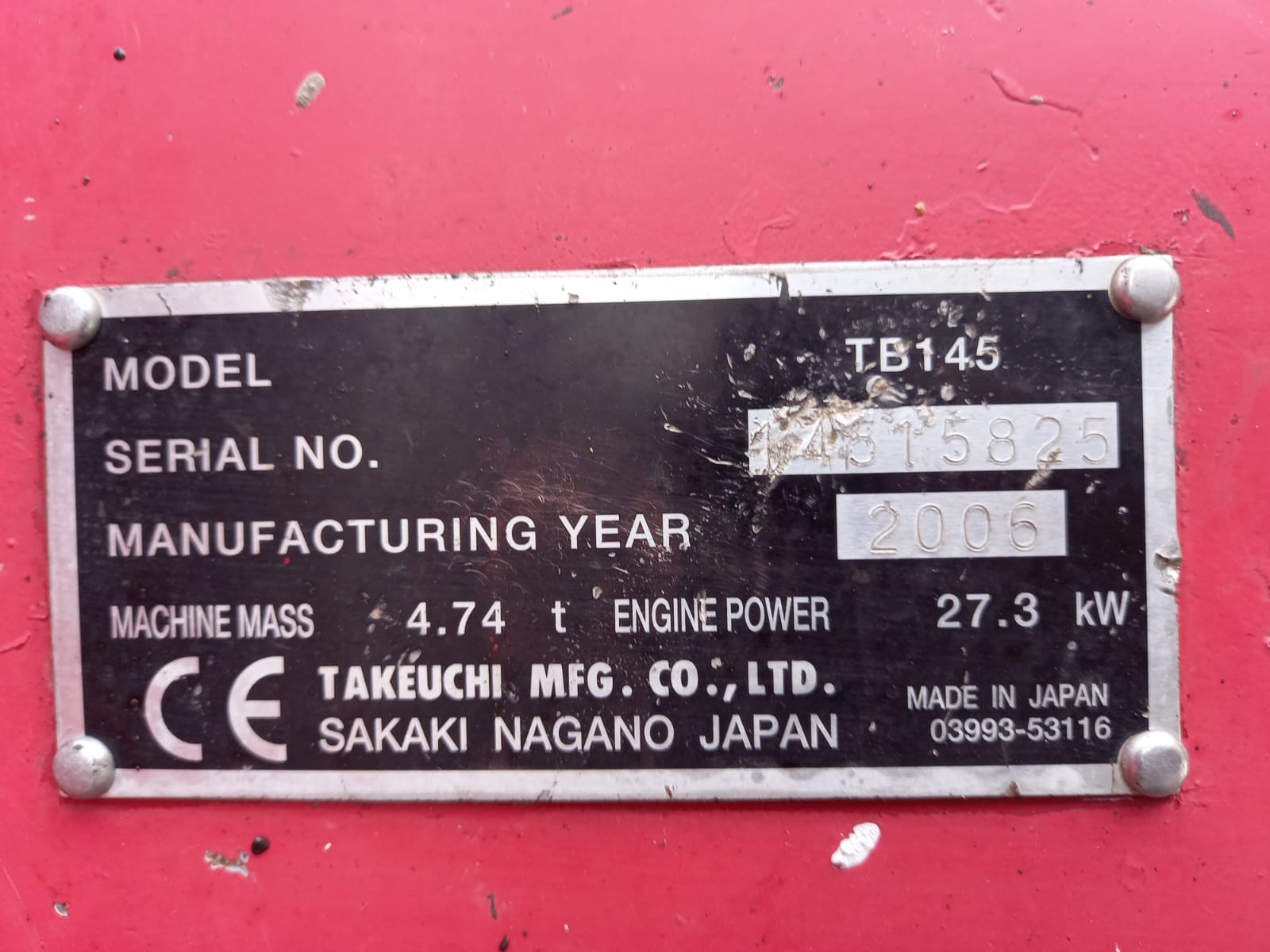 EXCAVADORA DE ORUGAS TAKEUCHI TB145